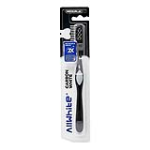 مسواک مدیوم allwhite مدل carbon white حاوی ذرات کربن فعال برای سفیدکنندگی بیشتر بوده و جرم و پلاک را از سطوح دندان پاک میکند. دارای دندانههای پلاستیکی جهت پولیش دندانها و پاککنندگی فاصله بین دندانی میباشد.