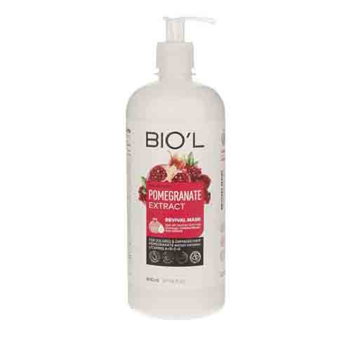 ماسک موی احیا کننده داخل حمام بیول با رایحه انار مناسب موهای رنگ شده میباشد. این محصول ترمیم کننده مو بوده و حاوی عصاره انار، کراتین و ویتامین های A، B، C و E میباشد.