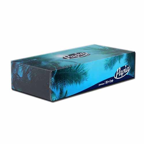 دستمال کاغذی جعبهای رومیزی پاپیا ۱۰۰ برگ و دولا، کاملا نرم و لطیف میباشد. این محصول با قدرت جذب بالا، در طرحهای متنوع جهت مصارف خانگی و و بهداشتی استفاده میشود.