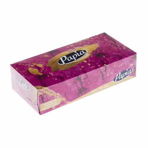 دستمال کاغذی جعبهای رومیزی پاپیا ۱۰۰ برگ و دولا، کاملا نرم و لطیف میباشد. این محصول با قدرت جذب بالا، در طرحهای متنوع جهت مصارف خانگی و و بهداشتی استفاده میشود.