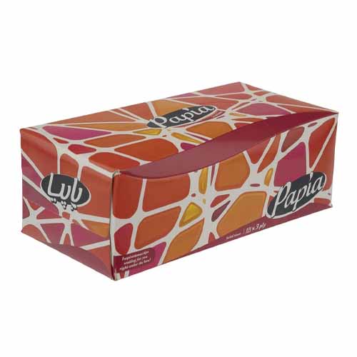 دستمال کاغذی جعبهای رومیزی پاپیا ۱۰۰ برگ و سه لا، کاملا نرم و لطیف میباشد. این محصول با قدرت جذب بالا، در طرحهای متنوع جهت مصارف خانگی و و بهداشتی استفاده میشود.