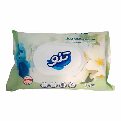 دستمال مرطوب تنو در دو رایحه لیمو و فرش دیوا فاقد الکل و پارابن، مناسب انواع پوست دست و صورت میباشد. درب این محصول بصورتی طراحی شده که بعد از هر بار استفاده به راحتی بسته تا مانع از خشک شدن آن شود.