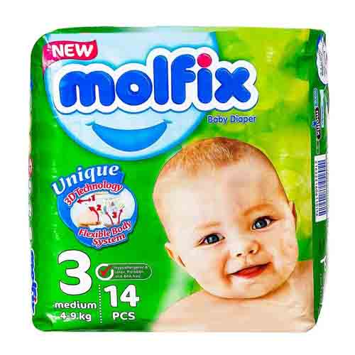 پوشک بچه مولفیکس سایز 3 در چند بسته بندی، مناسب برای کودکان با وزن ۴ تا ۹ کیلوگرم می باشد. این محصول دارای قابلیت جذب فوق العاده، نوارهای پهلو با خاصیت کشسانی، ساختار آناتومیک و سازگار با پوست است.