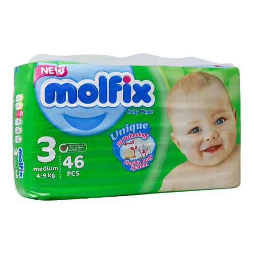 پوشک بچه مولفیکس سایز 3 در چند بسته بندی، مناسب برای کودکان با وزن ۴ تا ۹ کیلوگرم می باشد. این محصول دارای قابلیت جذب فوق العاده، نوارهای پهلو با خاصیت کشسانی، ساختار آناتومیک و سازگار با پوست است.
