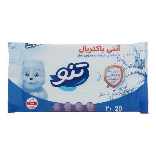 دستمال مرطوب آنتی باکتریال تنو بدون عطر در دو بسته بندی، فاقد الکل و پارابن، مناسب انواع پوست دست و صورت میباشد. درب این محصول بصورتی طراحی شده که بعد از هر بار استفاده به راحتی بسته تا مانع از خشک شدن آن شود.