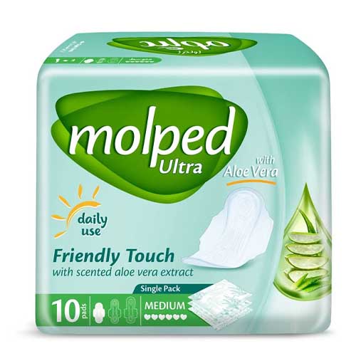 نوار بهداشتی آلوئه ورا مولپد الترا نازک رویه مشبک 10 عددی محصولات بهداشتی سلولزی نوار بهداشتی قیمت و خرید محصولات برند مولپد
