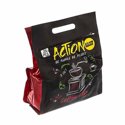 کافی میکس 3 در 1 ACTION حاوی کافئین سبب رفع خستگی، خواب و کسالت خواهد شد. این محصول در دو بسته بندی 10 و 18 ساشهای عرضه گردیده.