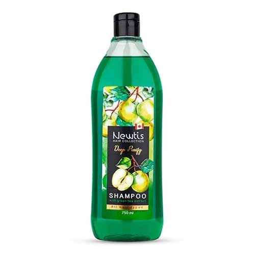 شامپو سیب سبز نیوتیس حاوی عصاره چای سبز و گیاه گوار بوده و باعث تنظیم چربی پوست سر، درخشندگی و زیبایی موها میشود. دارای خاصیت آنتی اکسیدانی بسیار قوی نیز میباشد و موها را تغذیه و تقویت میکند.