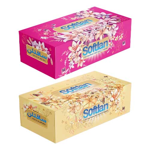 دستمال کاغذی رومیزی سافتلن مدل فرش 150 عددی 2 لایه محصولات بهداشتی سلولزی دستمال کاغذی جعبه ای softlan قیمت و خرید محصولات برند سافتلن