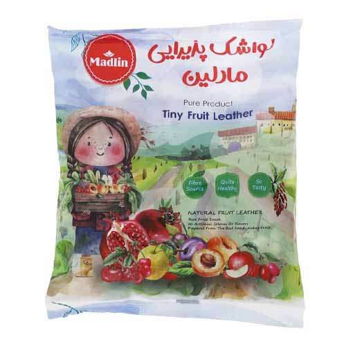 لواشک پذیرای چند میوه مادلین در دو بسته بندی 300 گرم و 1 کیلویی کاملا بهداشتی عرضه گردیده. این محصول از چهار لایه لواشک گرمخانه ای تولید شده از میوه، فاقد هر گونه مواد افزودنی، اسانس و رنگ مصنوعی میباشد.