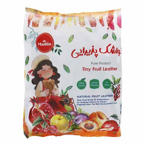 لواشک پذیرای چند میوه مادلین در دو بسته بندی 300 گرم و 1 کیلویی کاملا بهداشتی عرضه گردیده. این محصول از چهار لایه لواشک گرمخانه ای تولید شده از میوه، فاقد هر گونه مواد افزودنی، اسانس و رنگ مصنوعی میباشد.