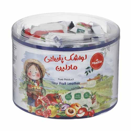 لواشک پذیرای چند میوه مادلین با بسته بندی شیک و جذاب 500 گرمی و کاملا بهداشتی عرضه گردیده. این محصول از چهار لایه لواشک گرمخانه ای تولید شده از میوه، فاقد هر گونه مواد افزودنی، اسانس و رنگ مصنوعی میباشد.