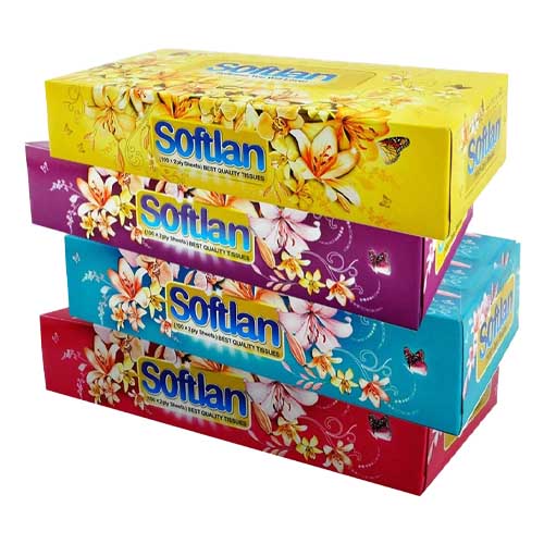 دستمال کاغذی رومیزی سافتلن 2 لایه محصولات بهداشتی سلولزی دستمال کاغذی جعبه ای 100 برگ کلینکس قیمت و خرید محصولات برند سافتلن