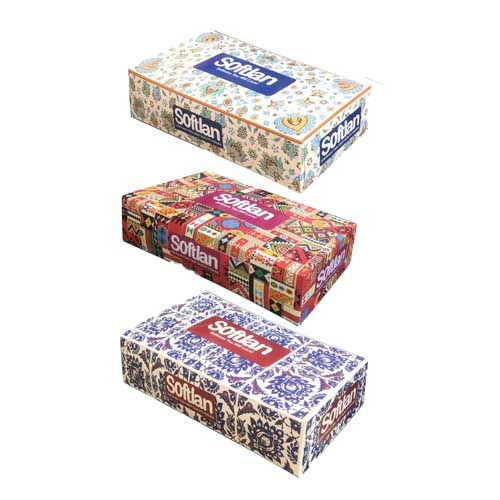 دستمال کاغذی جعبه ای سافتلن دو لایه مدل سنتی در بسته 100 عددی دارای طرح های متنوع و جذاب میباشد. این محصول کاملا بدون دخالت دست بسته بندی شده و مطابق تکنولوژی روز دنیا طراحی شده.