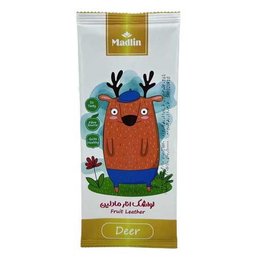 لواشک ورقه ای مادلین با طعم انار در بسته بندی های 20 گرمی با طرح های جذاب برای کودکان عرضه گردیده. این محصول با طعم ترش و ملس، کاملا بهداشتی و فاقد هر گونه مواد افزودنی، اسانس و رنگ مصنوعی میباشد.