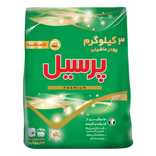 پودر ماشین لباسشویی پرسیل مدل پریمیوم دارای قدرت پاک کنندگی و لکه بری بالا حتی در آب سرد است و لباس ها را درخشان و تمیز میکند و از کدر شدن لباسها جلوگیری میکند.