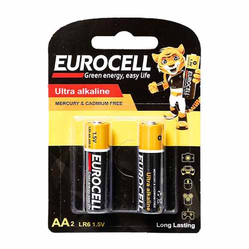 باتری قلمی EUROCELL مدل اولترا آلکالاین کارتی با سایز AA در دو بسته بندی عرضه گردیده. این محصول با قدرت تخلیه بالا و طول عمر و ماندگاری بیشتر از باتری های باکیفیت موجود در بازار میباشد.