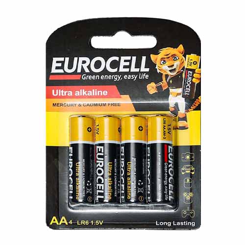 باتری قلمی EUROCELL مدل اولترا آلکالاین کارتی با سایز AA در دو بسته بندی عرضه گردیده. این محصول با قدرت تخلیه بالا و طول عمر و ماندگاری بیشتر از باتری های باکیفیت موجود در بازار میباشد.