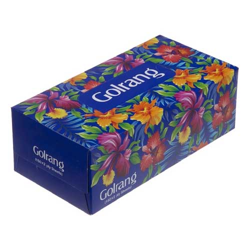 دستمال جعبه ای 150 برگی گلرنگ سری گلآویز، جذب بسیار بالایی دارد. دو لایه و از مواد بهداشتی و با کیفیت تهیه شده است و باعث التهاب و حساسیت پوست نمیشود. قابل استفاده در محل کار، منزل و مصارف بهداشتی دیگر میباشد.