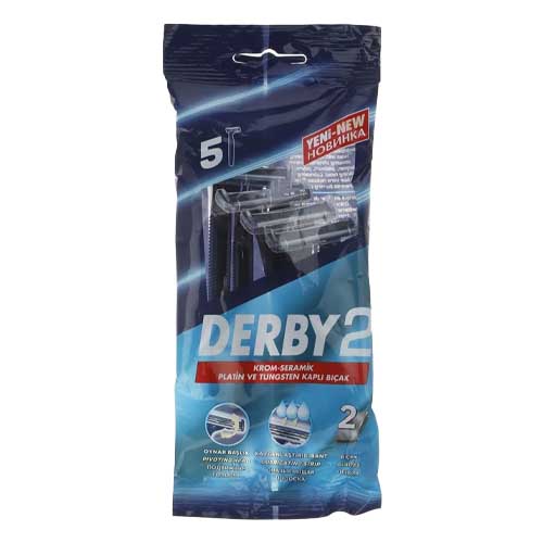 خودتراش دو لبه دربی، دارای تیغه از جنس کروم و پلاتینیوم است. دارای نوار لغزنده حاوی ویتامین E است که از اصطکاک و سوختگی پوست جلوگیری میکند. دارای سری متحرک جهت کنترل و حرکت آسان بر روی پوست میشود.