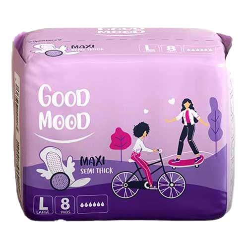 نوار بهداشتی مکسی گود مود، نیمه ضخیم و دارای رویه مشبک، پنبهای و ضد حساسیت است. دارای قدرت جذب سریع و بالا است. چسبهای آن نیز، استاندارد با قدرت چسبندگی مناسب بوده و از نشت رطوبت به لباس جلوگیری میکند.