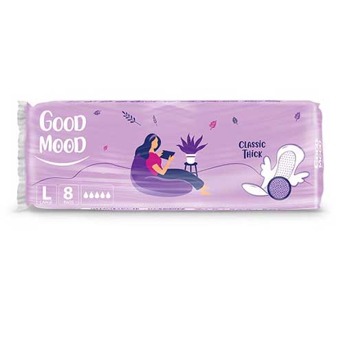 نوار بهداشتی کلاسیک گود مود ضخیم و بالدار است. دارای رویه به نرمی پنبه و با قدرت جذب بالا به همراه کانالهای جاذب میباشد. دارای چسبهای استاندارد با چسبندگی مناسب بوده و از نشت جلوگیری میکند.