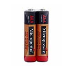 باتری نیم قلمی میکروپاور مدل R03 4S سایز AAA در دو بسته بندی دو عددی و چهار عددی توانایی تولید ۱.۵ ولت را دارا میباشد. این محصول دارای ماندگاری طولانی بوده و از نخستین نسل باتری های خشک تجاری میباشد.