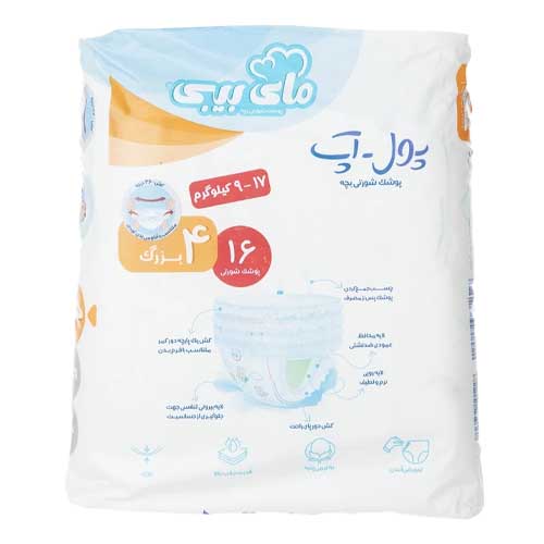 پوشک شورتی بچه مای بیبی پوشاک بچه سایز 4 پول آپ وزن 9 تا 17 کیلوگرم محصولات بهداشتی سلولزی لوازم نوزاد و کودک بهداشت و تعویض کودک قیمت و خرید محصولات برند مای بیبی