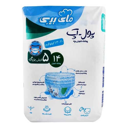 پوشک شورتی بچه مای بیبی پوشاک بچه سایز 5 پول آپ وزن 13 تا 20 کیلوگرم محصولات بهداشتی سلولزی لوازم نوزاد و کودک بهداشت و تعویض کودک قیمت و خرید محصولات برند مای بیبی