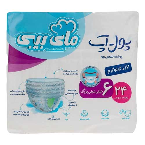 پوشک شورتی بچه مای بیبی سایز 6 ول آپ پوشاک بچه وزن بیشنر از 20 کیلوگرم محصولات بهداشتی سلولزی لوازم نوزاد و کودک بهداشت و تعویض کودک قیمت و خرید محصولات برند مای بیبی