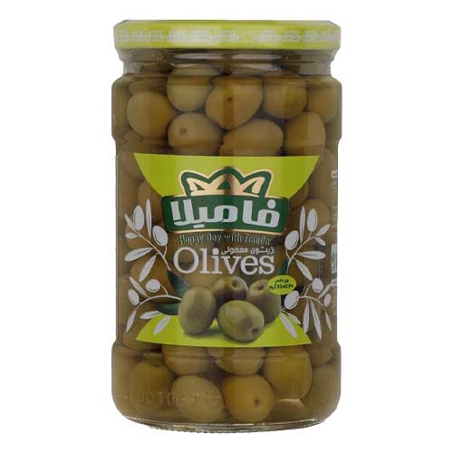 زیتون شور فامیلا هسته دار 650 گرم زیتون سبز ریز شور و ترشیجات زیتون درشت کنسروی قیمت و خرید محصولات برند فامیلا