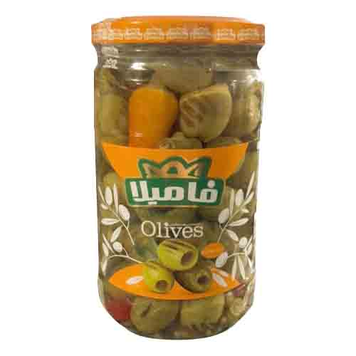 زیتون بدون هسته فامیلا شور گریل شور و ترشیجات زیتون سبز و سیاه شیشه ای کنسروی قیمت و خرید محصولات برند فامیلا