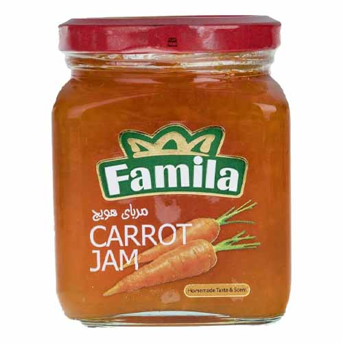 مربای هویج فامیلا 300 گرم مربا خانگی مربا شیشه ای مربای شرکتی صبحانه قیمت و خرید محصولات برند فامیلا