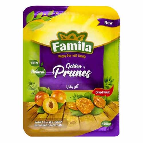 آلو خشک بخارا فامیلا 400 گرم تنقلات لواشک، برگه و آلوچه ملس ترش آلو خشک بسته بندی قیمت و خرید محصولات برند فامیلا