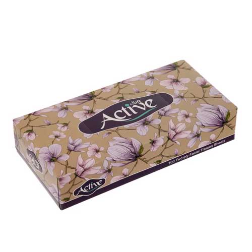 دستمال کاغذی اکتیو جعبه ای رومیزی 100 برگ دو لایه محصولات بهداشتی سلولزی دستمال کاغذی قیمت و خرید محصولات برند اکتیو