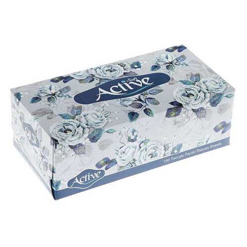 دستمال کاغذی رومیزی 150 برگ دولایه اکتیو دارای قدرت جذب بالا و مناسب برای آشپزخانه، پذیرایی و... می‌باشد. از کاغذ تیشو و با استفاده از آخرین تکنولوژی روز دنیا تولید شده است.