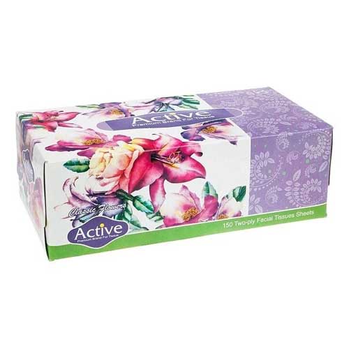 دستمال کاغذی رومیزی 150 برگ دولایه اکتیو دارای قدرت جذب بالا و مناسب برای آشپزخانه، پذیرایی و... می‌باشد. از کاغذ تیشو و با استفاده از آخرین تکنولوژی روز دنیا تولید شده است.