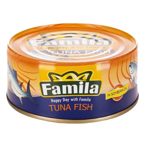 کنسرو تن ماهی فامیلا در روغن سویا از فیله تکهای روشن ماهی و بدون مواد نگهدارنده تولید شده است. این محصول سرشار از امگا 3 و 6 و سایر ویتامینهای مورد نیاز بدن میباشد.