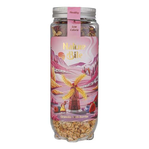 گرانولا نیچربایت در دو طعم شکلاتی و بری 380 گرمی مغذی و با ارزش غذایی بالا و کالری کم به تنهایی یک غذای کامل است. این محصول قابل اضافه شدن به شیر، ماست و سالاد هم میباشد.