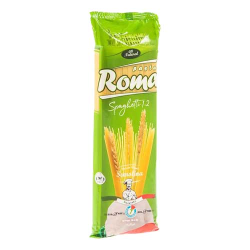 اسپاگتی روما با دو قطر 1.4 و 1.2 در بسته بندی 700 گرمی از آرد سمولینا در جه 1 تولید شده است. این محصول با ضخامت ایدهال، پخت سریع و طعمی اصیل انتخابی ایده ال برای تهیه انواع غذاهای ایتالیایی و مدیترانه ای میباشد.