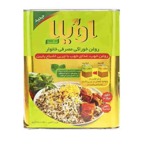 روغن نیمه جامد اویلا در دو بسته 4 کیلوگرم و 5 کیلوگرم دارای در آسان باز شو میباشد. این محصول بدون پالم و مناسب برای سرخ کردن و پخت و پز میباشد.