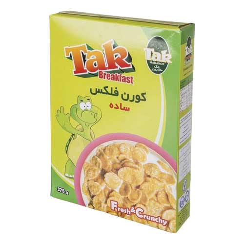 کورن فلکس تک ماکارون 375 گرمی در چندین طعم متنوع عرضه گردیده. این غلات صبحانه یک وعده غذایی خوشمزه، مقوی و کامل جایگزین صبحانه و میان وعده میباشد که طرفداران زیادی بین کودکان و حتی بزرگسالان دارد.