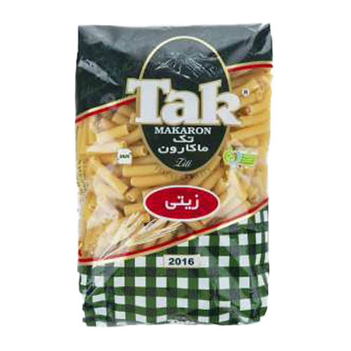 ماکارونی شکل دار تک ماکارون با وزن 500 گرم، از آرد سمولینا و با استفاده از دستگاههای تمام اتوماتیک و پیشرفته و در طرحهای متنوع تولید میشود. دارای ارزش غذایی بالا، دستور پخت آسان و سرشار از فیبر و کربوهیدارات است.