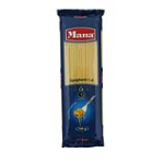 اسپاگتی مانا با قطر 1.4 در وزن های 250 گرم، 400 گرم، 500 گرم، 700 گرم و 1 کیلوگرم رشته ای و از گندم تولید شده است. این محصول ۳۰×۲×۱۰ سانتیمتر بوده و حاوی پروتئین و آهن میباشد.