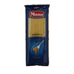 اسپاگتی مانا با قطر 1.6 در وزن 500 گرم، 700 گرم و 1 کیلوگرم ۳۰×۱۲×۲ سانتیمتر بوده و تنها پنج دقیقه زمان بری پخت لازم دارد. این محصول رشته ای و از گندم تولید شده است.
