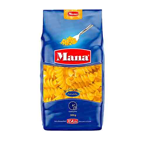 پاستا فرمی روتینی مانا در وزن 500 گرم دارای دو سایز کوچک و بزرگ میباشد که فرمی پیچ شکل شبیه به فنر دارد. این محصول یک انتخاب عالی برای تهیه انواع سالاد پاستا میباشد.