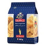 رشته سوپی زر ماکارون با فرم آشیانه ای از آرد سمولینا تولید و در سه وزن 200، 300 و 500 گرم عرضه گردیده. این ورمیشل آشیانهای حاوی فیبر و کربو هیدرات بوده و باعث جذب بهتر پروتئین میشود و مناسب برای درست کردن سوپ میباشد.
