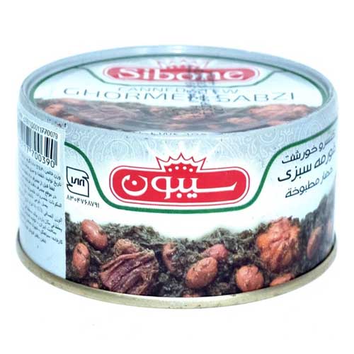 کنسرو خورشت قورمه سبزی سیبون از سبزی قورمه سبزی، گوشت گوساله، روغن مایع، لوبیا قرمز، پیاز، آبلیمو، نمک، لیمو عمانی، ادویه مخصوص و بدون مواد نگهدارنده درست شده است. پس از باز نمودن محصول، در یخچال نگهداری و تا 24 ساعت مصرف گردد.