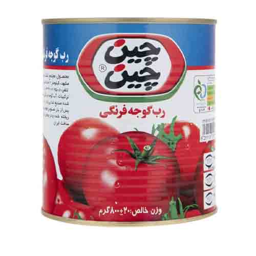 رب گوجه فرنگی قوطی چین چین در دو وزن 800 گرم، یک وزن 400 گرم و یک وزن 4 کیلوگرم با درب آسان باز شو در زمان پخت با روشی خاص ویتامین و مواد مغذی گوجه را حفظ کرده و باعث ایجاد آلترامید نمی‌شود.