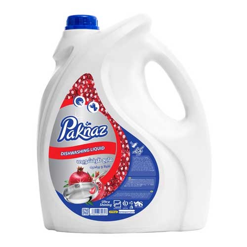 مایع ظرفشویی پاکناز با حجم 3.75 لیتر دارای سه رایحه انار، لیمو و انگور میباشد. این محصول حاوی مواد نرم کننده و شوینده های آمفوتریک بوده که باعث آسیب کمتر به پوست دست میشود.